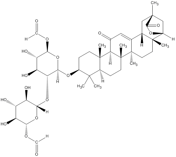 InChI=1S/C42H60O16/c1-37(2)20-8-11-42(7)31(19(43)14-17-18-15-38(3)16-22(55-36(38)53)39(18,4)12-13-41(17,42)6)40(20,5)10-9-21(37)54-35-30(26(47)25(46)29(57-35)33(51)52)58-34-27(48)23(44)24(45)28(56-34)32(49)50/h14,18,20-31,34-35,44-48H,8-13,15-16H2,1-7H3,(H,49,50)(H,51,52)/t18-,20-,21-,22+,23-,24-,25-,26-,27+,28-,29-,30+,31+,34-,35+,38+,39+,40-,41+,42+/m0/s1 |
