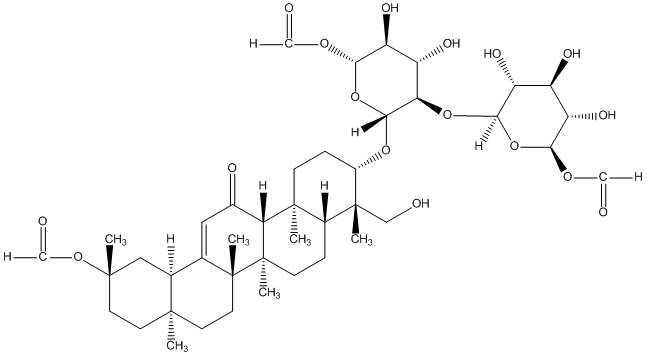 InChI=1S/C42H62O17/c1-37-11-12-38(2,36(54)55)16-19(37)18-15-20(44)31-39(3)9-8-22(40(4,17-43)21(39)7-10-42(31,6)41(18,5)14-13-37)56-35-30(26(48)25(47)29(58-35)33(52)53)59-34-27(49)23(45)24(46)28(57-34)32(50)51/h15,19,21-31,34-35,43,45-49H,7-14,16-17H2,1-6H3,(H,50,51)(H,52,53)(H,54,55)/t19-,21+,22-,23-,24-,25-,26-,27+,28-,29-,30+,31+,34-,35+,37+,38-,39-,40+,41+,42+/m0/s1 |