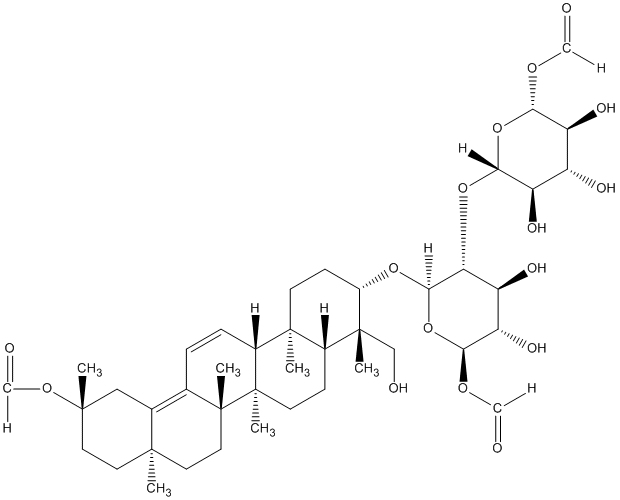 InChI=1S/C42H62O16/c1-37-13-14-38(2,36(53)54)17-20(37)19-7-8-22-39(3)11-10-23(40(4,18-43)21(39)9-12-42(22,6)41(19,5)16-15-37)55-35-31(27(47)26(46)30(57-35)33(51)52)58-34-28(48)24(44)25(45)29(56-34)32(49)50/h7-8,21-31,34-35,43-48H,9-18H2,1-6H3,(H,49,50)(H,51,52)(H,53,54)/t21-,22-,23+,24+,25+,26+,27+,28-,29+,30+,31-,34+,35-,37-,38+,39+,40-,41-,42-/m1/s1 |