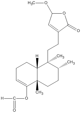 InChI=1S/C21H30O5/c1-13-8-10-21(3)15(18(22)23)6-5-7-16(21)20(13,2)11-9-14-12-17(25-4)26-19(14)24/h6,12-13,16-17H,5,7-11H2,1-4H3,(H,22,23)/t13-,16-,17?,20+,21-/m1/s1 |