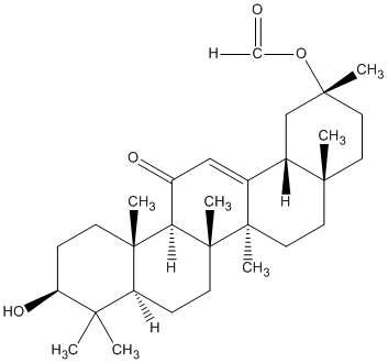 CC1(C)[C@@H](O)CC[C@]2(C)[C@H]3C(=O)C=C4[C@@H]5C[C@](C)(OC=O)CC[C@]5(C)CC[C@@]4(C)[C@]3(C)CC[C@@H]12 |