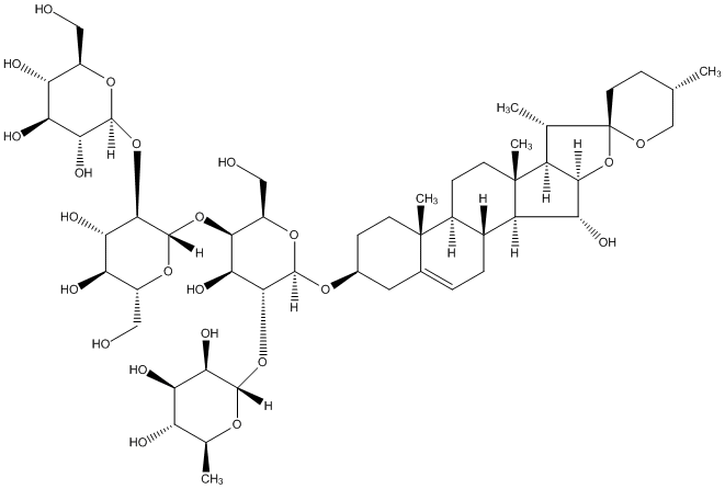 InChI=1S/C51H82O23/c1-19-8-13-51(65-18-19)20(2)29-42(74-51)34(58)30-24-7-6-22-14-23(9-11-49(22,4)25(24)10-12-50(29,30)5)67-47-44(73-45-38(62)35(59)31(55)21(3)66-45)40(64)41(28(17-54)70-47)71-48-43(37(61)33(57)27(16-53)69-48)72-46-39(63)36(60)32(56)26(15-52)68-46/h6,19-21,23-48,52-64H,7-18H2,1-5H3/t19-,20-,21-,23-,24+,25-,26+,27+,28+,29-,30+,31-,32+,33+,34+,35+,36-,37-,38+,39+,40-,41-,42+,43+,44+,45-,46-,47+,48-,49-,50+,51+/m0/s1 |