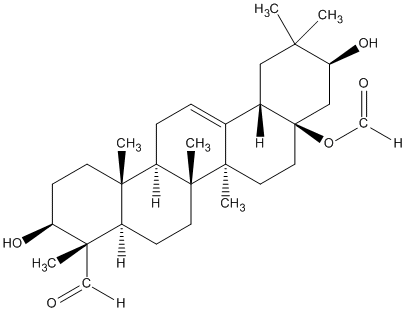 InChI=1S/C30H46O5/c1-25(2)15-19-18-7-8-21-26(3)11-10-22(32)27(4,17-31)20(26)9-12-29(21,6)28(18,5)13-14-30(19,24(34)35)16-23(25)33/h7,17,19-23,32-33H,8-16H2,1-6H3,(H,34,35)/t19-,20+,21+,22-,23-,26-,27-,28+,29+,30+/m0/s1 |