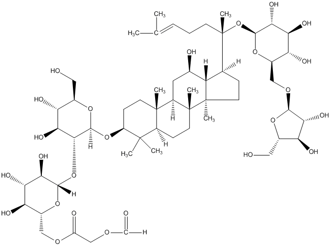 InChI=1S/C56H92O25/c1-24(2)10-9-14-56(8,81-50-46(72)42(68)40(66)30(78-50)23-74-48-44(70)38(64)28(21-58)75-48)25-11-16-55(7)36(25)26(59)18-32-53(5)15-13-33(52(3,4)31(53)12-17-54(32,55)6)79-51-47(43(69)37(63)27(20-57)76-51)80-49-45(71)41(67)39(65)29(77-49)22-73-35(62)19-34(60)61/h10,25-33,36-51,57-59,63-72H,9,11-23H2,1-8H3,(H,60,61)/t25-,26+,27+,28-,29+,30+,31-,32+,33-,36-,37+,38-,39+,40+,41-,42-,43-,44+,45+,46+,47+,48+,49-,50-,51-,53-,54+,55+,56-/m0/s1 |