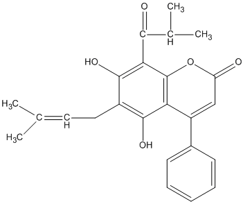 CC(C)=CCc1c(O)c(C(=O)C(C)C)c2oc(=O)cc(-c3ccccc3)c2c1O |