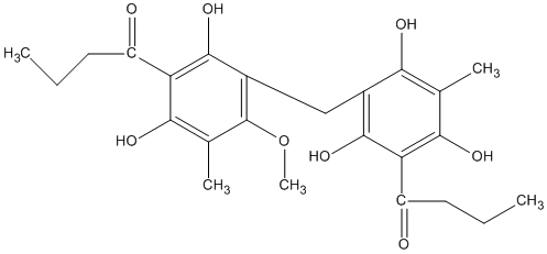 CCCC(=O)c1c(O)c(C)c(O)c(Cc2c(O)c(C(=O)CCC)c(O)c(C)c2OC)c1O |
