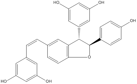 Oc1ccc([C@H]2Oc3ccc(/C=Cc4cc(O)cc(O)c4)cc3[C@@H]2c2cc(O)cc(O)c2)cc1 |