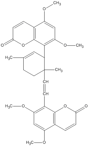 COc1cc(OC)c2ccc(=O)oc2c1C=CC1(C)CCC(C)=CC1c1c(OC)cc(OC)c2ccc(=O)oc12 |