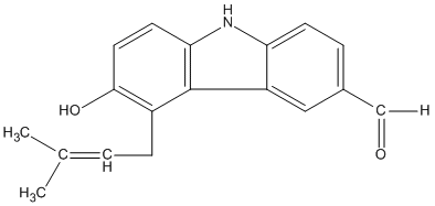 CC(C)=CCc1c(O)ccc2[nH]c3ccc(C=O)cc3c12 |