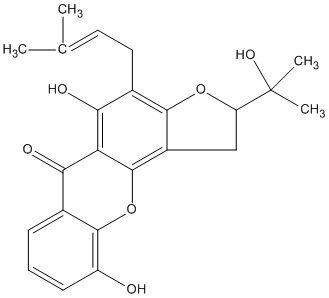 InChI=1/C23H24O6/c1-11(2)8-9-13-19(26)17-18(25)12-6-5-7-15(24)21(12)29-22(17)14-10-16(23(3,4)27)28-20(13)14/h5-8,16,24,26-27H,9-10H2,1-4H3 |