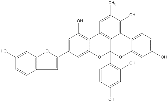 Cc1cc2c3c(c1O)-c1ccc(O)cc1OC3(c1ccc(O)cc1O)Oc1cc(-c3cc4ccc(O)cc4o3)cc(O)c1-2 |