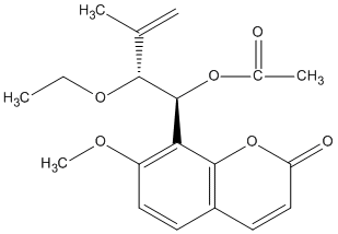 C=C(C)[C@@H](OCC)[C@@H](OC(C)=O)c1c(OC)ccc2ccc(=O)oc12 |
