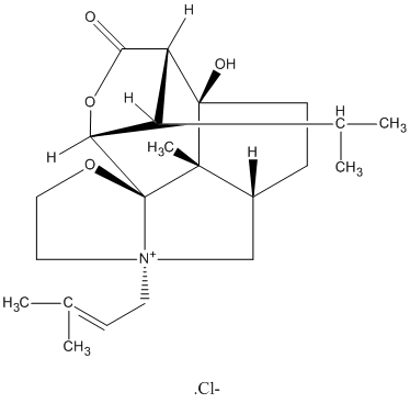 CC(C)=CC[N@+]12CCO[C@]13[C@@H]1OC(=O)[C@@H](C1C(C)C)[C@]1(O)CC[C@H](C2)[C@@]13C.[Cl-] |