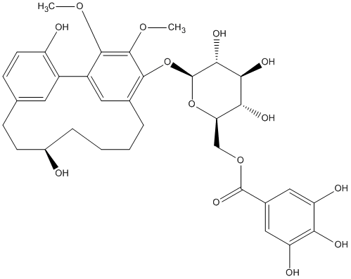 COc1c2cc(c(O[C@@H]3O[C@H](COC(=O)c4cc(O)c(O)c(O)c4)[C@@H](O)[C@H](O)[C@H]3O)c1OC)CCCC[C@@H](O)CCc1ccc(O)c-2c1 |