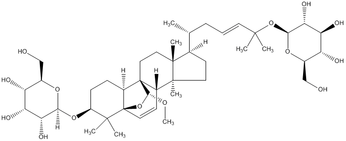 InChI=1S/C43H70O14/c1-22(10-9-15-38(2,3)56-36-34(51)32(49)30(47)25(21-45)54-36)23-13-16-41(7)26-14-17-43-27(42(26,37(52-8)57-43)19-18-40(23,41)6)11-12-28(39(43,4)5)55-35-33(50)31(48)29(46)24(20-44)53-35/h9,14-15,17,22-37,44-51H,10-13,16,18-21H2,1-8H3/b15-9+/t22-,23-,24-,25-,26+,27+,28+,29-,30-,31-,32+,33-,34-,35+,36+,37-,40-,41+,42+,43-/m1/s1 |