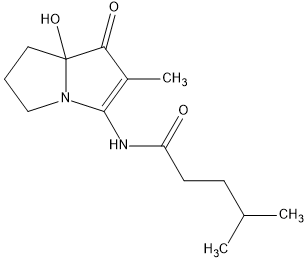 InChI=1S/C14H22N2O3/c1-9(2)5-6-11(17)15-13-10(3)12(18)14(19)7-4-8-16(13)14/h9,19H,4-8H2,1-3H3,(H,15,17) |