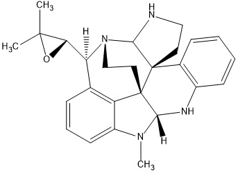 InChI=1S/C26H30N4O/c1-24(2)21(31-24)20-15-7-6-10-18-19(15)26-12-14-30(20)22-25(26,11-13-27-22)16-8-4-5-9-17(16)28-23(26)29(18)3/h4-10,20-23,27-28H,11-14H2,1-3H3/t20-,21-,22?,23+,25-,26-/m0/s1 |