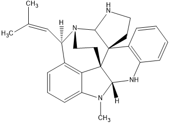 InChI=1S/C26H30N4/c1-16(2)15-21-17-7-6-10-20-22(17)26-12-14-30(21)23-25(26,11-13-27-23)18-8-4-5-9-19(18)28-24(26)29(20)3/h4-10,15,21,23-24,27-28H,11-14H2,1-3H3/t21-,23?,24-,25+,26+/m1/s1 |