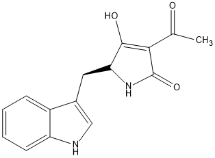CC(=O)C1=C(O)C(Cc2c[nH]c3ccccc23)NC1=O |