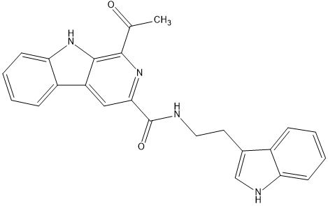 InChI=1S/C24H20N4O2/c1-14(29)22-23-18(17-7-3-5-9-20(17)27-23)12-21(28-22)24(30)25-11-10-15-13-26-19-8-4-2-6-16(15)19/h2-9,12-13,26-27H,10-11H2,1H3,(H,25,30) |