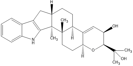 InChI=1S/C27H35NO3/c1-25(2,30)24-21(29)14-18-19-10-9-15-13-17-16-7-5-6-8-20(16)28-23(17)27(15,4)26(19,3)12-11-22(18)31-24/h5-8,14-15,19,21-22,24,28-30H,9-13H2,1-4H3/t15-,19-,21+,22-,24-,26-,27+/m0/s1 |