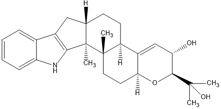InChI=1S/C27H35NO3/c1-25(2,30)24-21(29)14-18-19-10-9-15-13-17-16-7-5-6-8-20(16)28-23(17)27(15,4)26(19,3)12-11-22(18)31-24/h5-8,14-15,19,21-22,24,28-30H,9-13H2,1-4H3/t15-,19-,21-,22-,24-,26-,27+/m0/s1 |