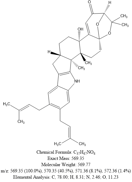 CC(C)=CCc1cc2[nH]c3c(c2cc1CC=C(C)C)C[C@@H]1CC[C@@]2(O)C4=CC(=O)[C@@H]5O[C@@]4(CC[C@]2(C)[C@@]31C)OC5(C)C |