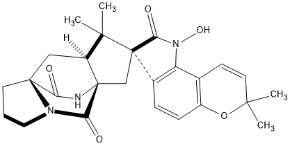 CC1(C)C=Cc2c(ccc3c2N(O)C(=O)[C@]32C[C@@]34NC(=O)[C@]5(CCCN5C3=O)C[C@H]4C2(C)C)O1 |