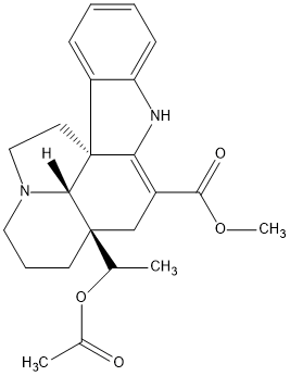COC(=O)C1=C2Nc3ccccc3[C@@]23CCN2CCC[C@@](C(C)OC(C)=O)(C1)[C@H]23 |
