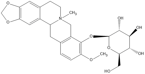 InChI=1S/C26H32NO9/c1-27-6-5-14-8-19-20(34-12-33-19)9-15(14)17(27)7-13-3-4-18(32-2)25(16(13)10-27)36-26-24(31)23(30)22(29)21(11-28)35-26/h3-4,8-9,17,21-24,26,28-31H,5-7,10-12H2,1-2H3/t17?,21-,22-,23+,24-,26+/m1/s1 |