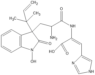 C=CC(C)(C)C1(CC(N)C(=O)N/C(=C/c2c[nH]cn2)C(=O)O)C(=O)N(O)c2ccccc21 |