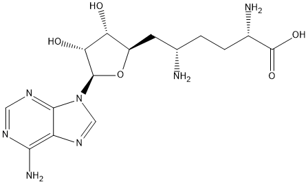 Nc1ncnc2c1ncn2[C@@H]1O[C@H](C[C@@H](N)CC[C@H](N)C(=O)O)[C@@H](O)[C@H]1O |