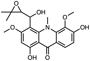 COc1cc(O)c2c(=O)c3ccc(O)c(OC)c3n(C)c2c1C(O)C1OC1(C)C |