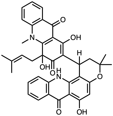 CC(C)=CCC1(O)C(=O)C(C2CC(C)(C)Oc3cc(O)c4c(=O)c5ccccc5[nH]c4c32)=C(O)c2c1n(C)c1ccccc1c2=O |