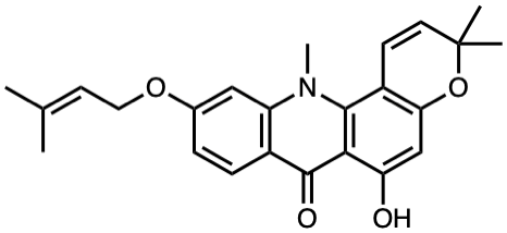 CC(C)=CCOc1ccc2c(=O)c3c(O)cc4c(c3n(C)c2c1)C=CC(C)(C)O4 |