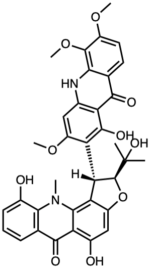 COc1cc2[nH]c3c(OC)c(OC)ccc3c(=O)c2c(O)c1[C@H]1c2c(cc(O)c3c(=O)c4cccc(O)c4n(C)c23)O[C@@H]1C(C)(C)O |