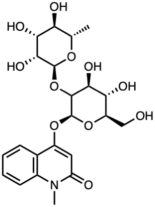 C[C@@H]1O[C@@H](OC2[C@H](Oc3cc(=O)n(C)c4ccccc34)O[C@H](CO)[C@@H](O)[C@@H]2O)[C@H](O)[C@H](O)[C@H]1O |