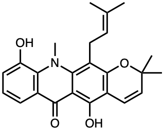 CC(C)=CCc1c2c(c(O)c3c(=O)c4cccc(O)c4n(C)c13)C=CC(C)(C)O2 |