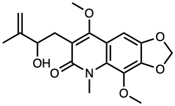 C=C(C)C(O)Cc1c(OC)c2cc3c(c(OC)c2n(C)c1=O)OCO3 |