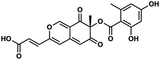 Cc1cc(O)cc(O)c1C(=O)O[C@]1(C)C(=O)C=C2C=C(/C=C/C(=O)O)OC=C2C1=O |