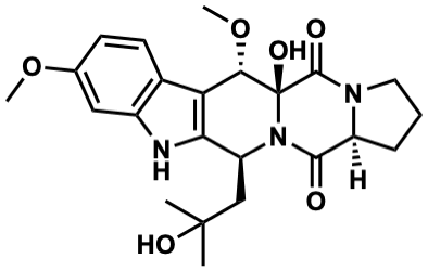 COc1ccc2c3c([nH]c2c1)[C@H](CC(C)(C)O)N1C(=O)[C@@H]2CCCN2C(=O)[C@@]1(O)[C@H]3OC |