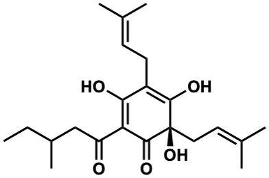 CCC(C)CC(=O)C1=C(O)C(CC=C(C)C)=C(O)[C@](O)(CC=C(C)C)C1=O |