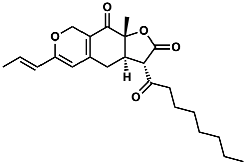 InChI=1S/C23H30O5/c1-4-6-7-8-9-11-19(24)20-18-13-15-12-16(10-5-2)27-14-17(15)21(25)23(18,3)28-22(20)26/h5,10,12,18,20H,4,6-9,11,13-14H2,1-3H3/b10-5+/t18-,20+,23-/m1/s1 |