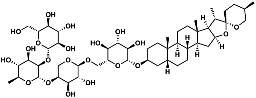 InChI=1S/C50H82O21/c1-20-8-13-50(64-17-20)21(2)32-28(71-50)15-27-25-7-6-23-14-24(9-11-48(23,4)26(25)10-12-49(27,32)5)66-45-41(60)38(57)35(54)30(68-45)18-62-44-40(59)36(55)31(19-63-44)69-47-43(39(58)33(52)22(3)65-47)70-46-42(61)37(56)34(53)29(16-51)67-46/h20-47,51-61H,6-19H2,1-5H3/t20-,21+,22+,23-,24+,25-,26+,27+,28+,29-,30-,31+,32+,33+,34-,35-,36+,37+,38+,39-,40-,41-,42-,43-,44-,45-,46+,47+,48+,49+,50-/m1/s1 |