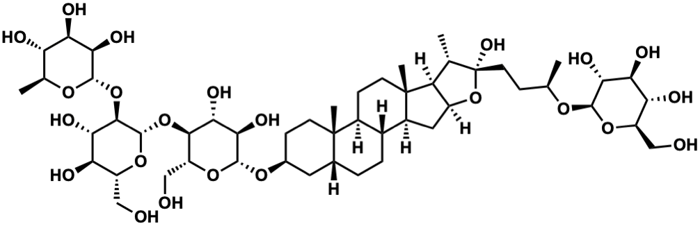 InChI=1S/C50H84O23/c1-19(65-44-40(62)36(58)33(55)28(16-51)68-44)8-13-50(64)20(2)31-27(73-50)15-26-24-7-6-22-14-23(9-11-48(22,4)25(24)10-12-49(26,31)5)67-46-41(63)38(60)42(30(18-53)70-46)71-47-43(37(59)34(56)29(17-52)69-47)72-45-39(61)35(57)32(54)21(3)66-45/h19-47,51-64H,6-18H2,1-5H3/t19-,20+,21+,22-,23+,24-,25+,26+,27+,28-,29-,30-,31+,32+,33-,34-,35-,36+,37+,38-,39-,40-,41-,42-,43-,44-,45+,46-,47+,48+,49+,50-/m1/s1 |
