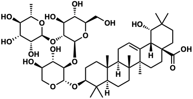 InChI=1S/C47H76O17/c1-21-29(50)32(53)34(55)38(60-21)63-36-33(54)31(52)24(19-48)61-40(36)64-35-30(51)23(49)20-59-39(35)62-27-12-13-44(6)25(43(27,4)5)11-14-46(8)26(44)10-9-22-28-37(56)42(2,3)15-17-47(28,41(57)58)18-16-45(22,46)7/h9,21,23-40,48-56H,10-20H2,1-8H3,(H,57,58)/t21-,23+,24+,25-,26+,27-,28+,29-,30-,31+,32+,33-,34+,35+,36+,37-,38-,39-,40-,44-,45+,46+,47-/m0/s1 |