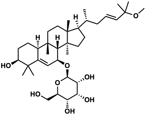 InChI=1S/C37H62O8/c1-21(11-10-15-33(2,3)43-9)22-14-16-37(8)31-25(44-32-30(42)29(41)28(40)26(20-38)45-32)19-24-23(12-13-27(39)34(24,4)5)35(31,6)17-18-36(22,37)7/h10,15,19,21-23,25-32,38-42H,11-14,16-18,20H2,1-9H3/b15-10+/t21-,22-,23-,25+,26-,27+,28-,29-,30-,31-,32-,35+,36-,37+/m1/s1 |