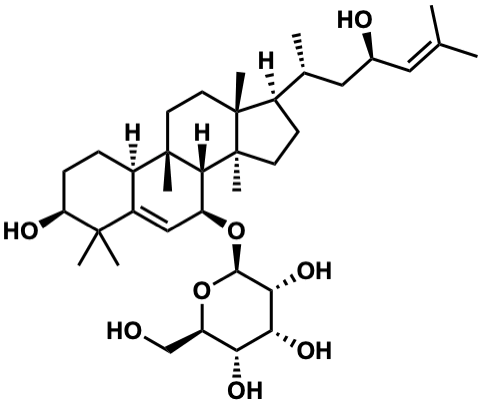 InChI=1S/C36H60O8/c1-19(2)15-21(38)16-20(3)22-11-12-36(8)31-25(43-32-30(42)29(41)28(40)26(18-37)44-32)17-24-23(9-10-27(39)33(24,4)5)34(31,6)13-14-35(22,36)7/h15,17,20-23,25-32,37-42H,9-14,16,18H2,1-8H3/t20-,21+,22-,23-,25+,26-,27+,28-,29-,30-,31-,32-,34+,35-,36+/m1/s1 |