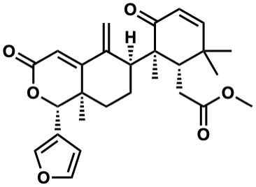 InChI=1S/C27H32O6/c1-16-18(27(5)20(14-22(29)31-6)25(2,3)10-8-21(27)28)7-11-26(4)19(16)13-23(30)33-24(26)17-9-12-32-15-17/h8-10,12-13,15,18,20,24H,1,7,11,14H2,2-6H3/t18-,20-,24-,26+,27+/m0/s1 |