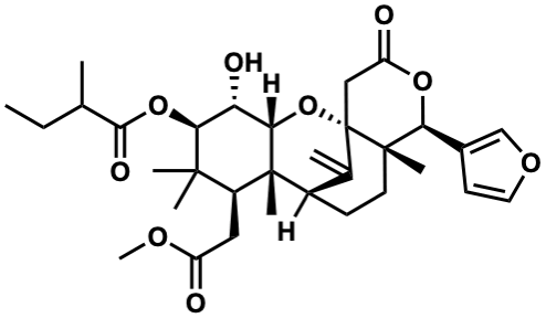 InChI=1S/C32H44O9/c1-9-17(2)28(36)40-26-24(35)27-31(7,21(29(26,4)5)14-22(33)37-8)20-10-12-30(6)25(19-11-13-38-16-19)39-23(34)15-32(30,41-27)18(20)3/h11,13,16-17,20-21,24-27,35H,3,9-10,12,14-15H2,1-2,4-8H3/t17?,20-,21-,24-,25-,26-,27-,30-,31+,32-/m0/s1 |